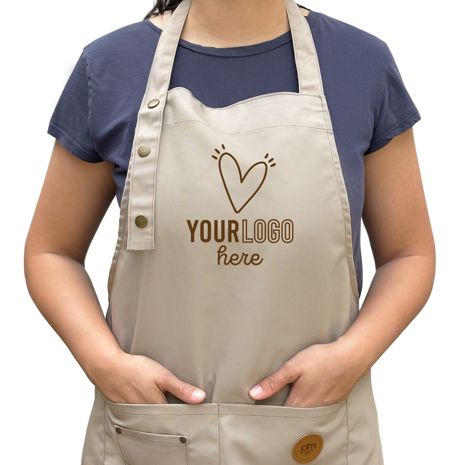 Personalizamos nuestros delantales con tu logo. Elige usar un color, dos colores o tres.